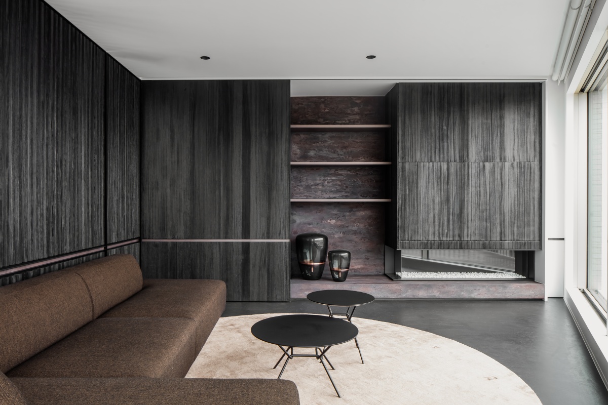 Een casco penthouse met een bijzondere plattegrond...een ideale uitdaging om in nauw overleg met de bouwheer een gepaste indeling te vinden. Het gebruik van ruwere materialen zoals een wandbekleding in mortex en een keukeneiland in dekton zorgen voor bijzondere accenten. Om het geheel te vervolledigen werd gebruik gemaakt van lariks, mortex en messing.
